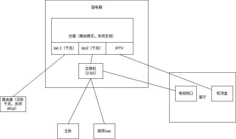 这个世界把人限制的死死的,只有一线生机,之前良好的设计。因为电视家的 OTT 服务倒台而不能用,需要三个网口。改了网络拓扑图。