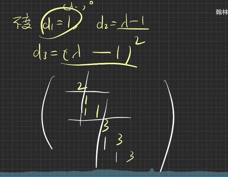 出现的次数是含义就是,如果有两个 \((\lambda -1)^{2}\) 的话,对角线上再多写一个“三个 1”的块就行了。\(\lambda\) 剪的那个数就是对角线的数。约定在对角线外的值一般放在下面。